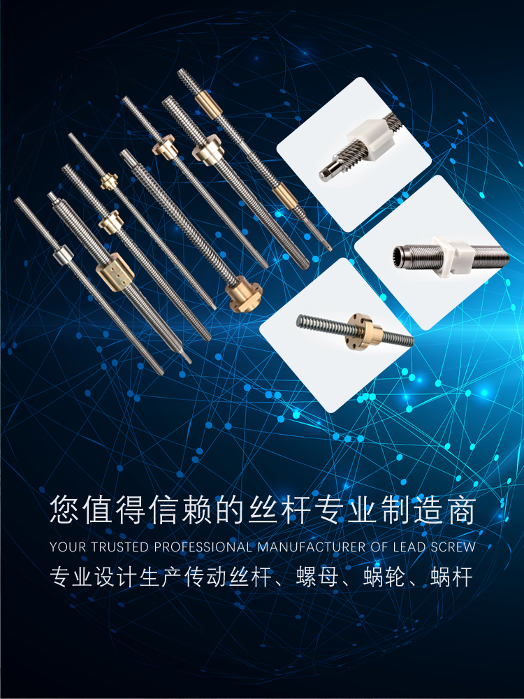 寧波朗馳傳動(dòng)科技有限公司專(zhuān)業(yè)生產(chǎn)傳動(dòng)、升降、推拉、緊固等作用的梯形螺紋絲桿和螺母。螺紋標(biāo)準(zhǔn)有:國(guó)標(biāo)GB、德標(biāo)DIN103、美標(biāo)ACME等單頭、多頭及左右旋向的梯形螺紋。絲桿材質(zhì)有碳鋼、合金鋼、不銹鋼、銅、鋁等;螺母材質(zhì)有錫青銅、聚甲醛(POM)、碳鋼、鑄鐵、易切削鋼等。可按客戶(hù)要求定制特殊規(guī)格的絲桿螺母、M0.5-M6模數(shù)的蝸輪蝸桿。